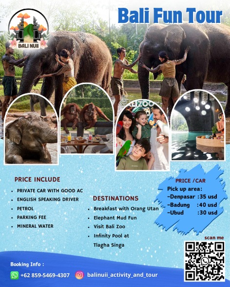 Bali Fun Tour ☆☆☆☆☆ 0.0 Start From USD30 View Detail Breakfast With Orang UtanElephant Mud FunVisit Bali ZooInfinity Pool AtTlagha Singa